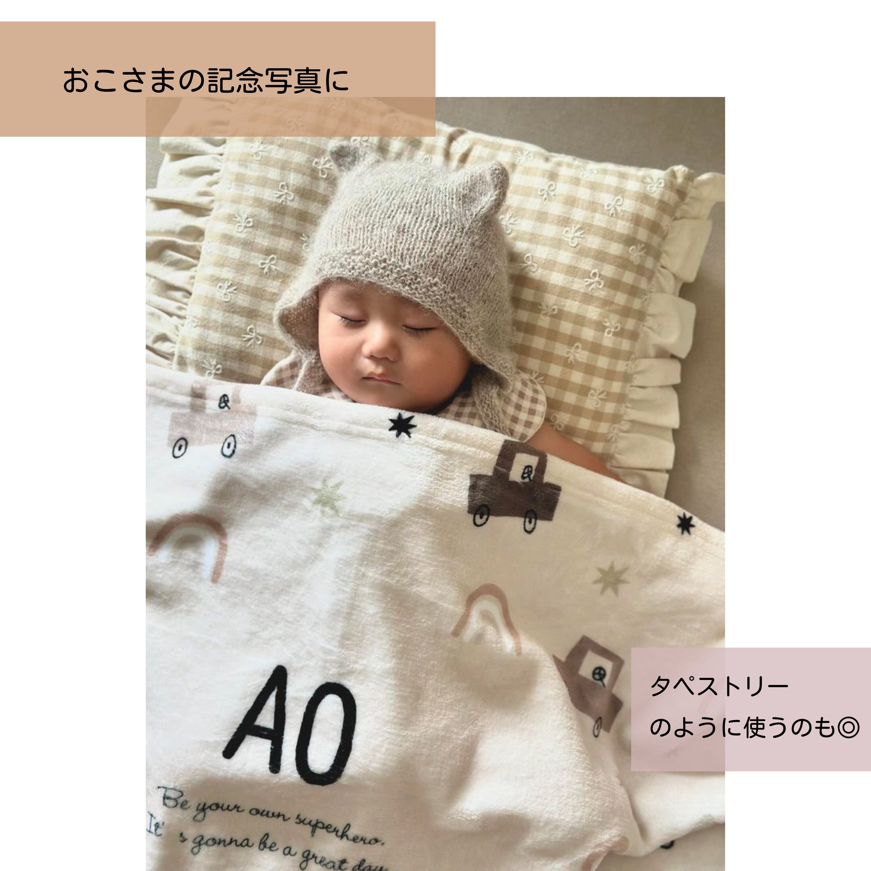 ブランケットはタペストリーのように使用するのもかわいい名入りブランケットです。