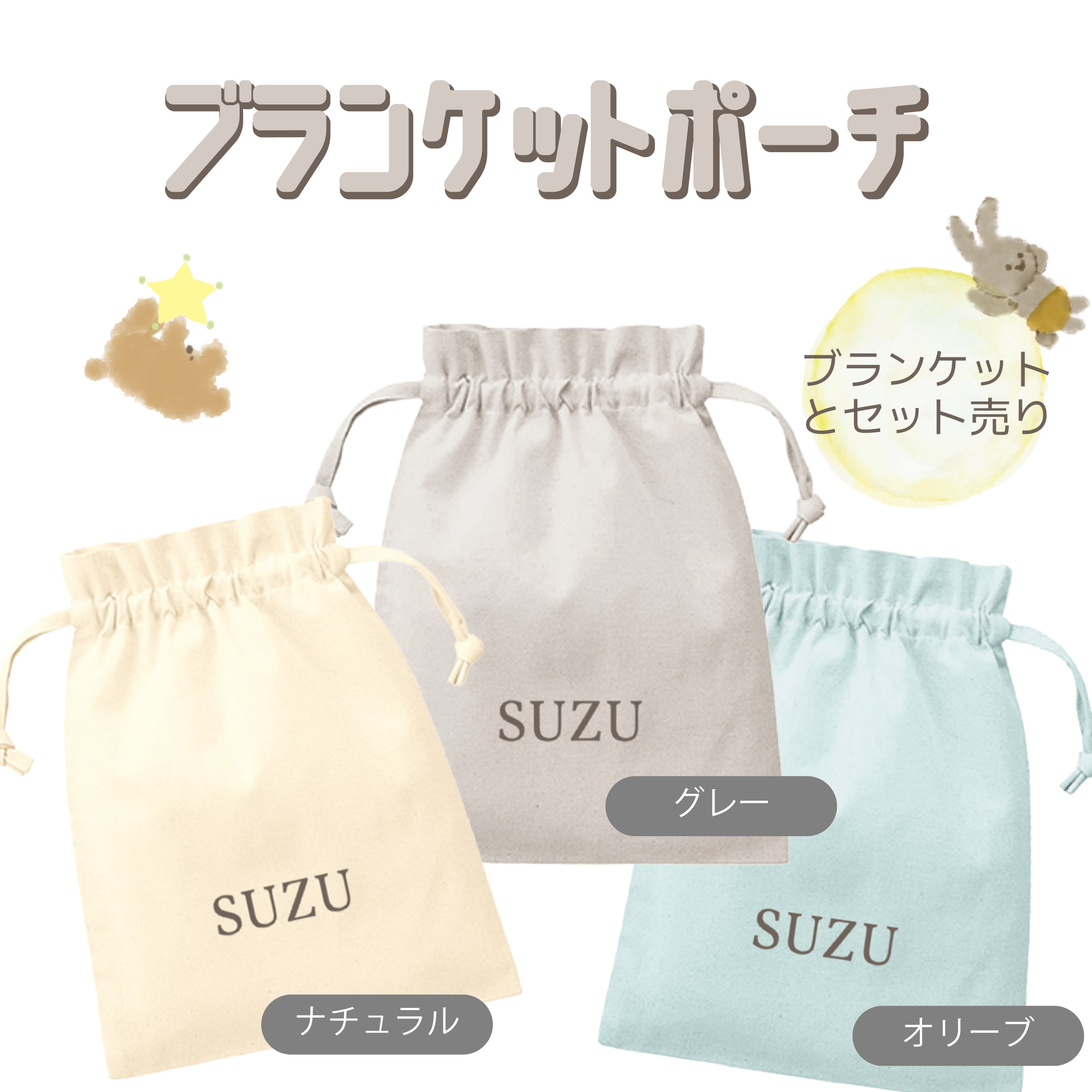 こちらはポーチとブランケットのセット販売です。