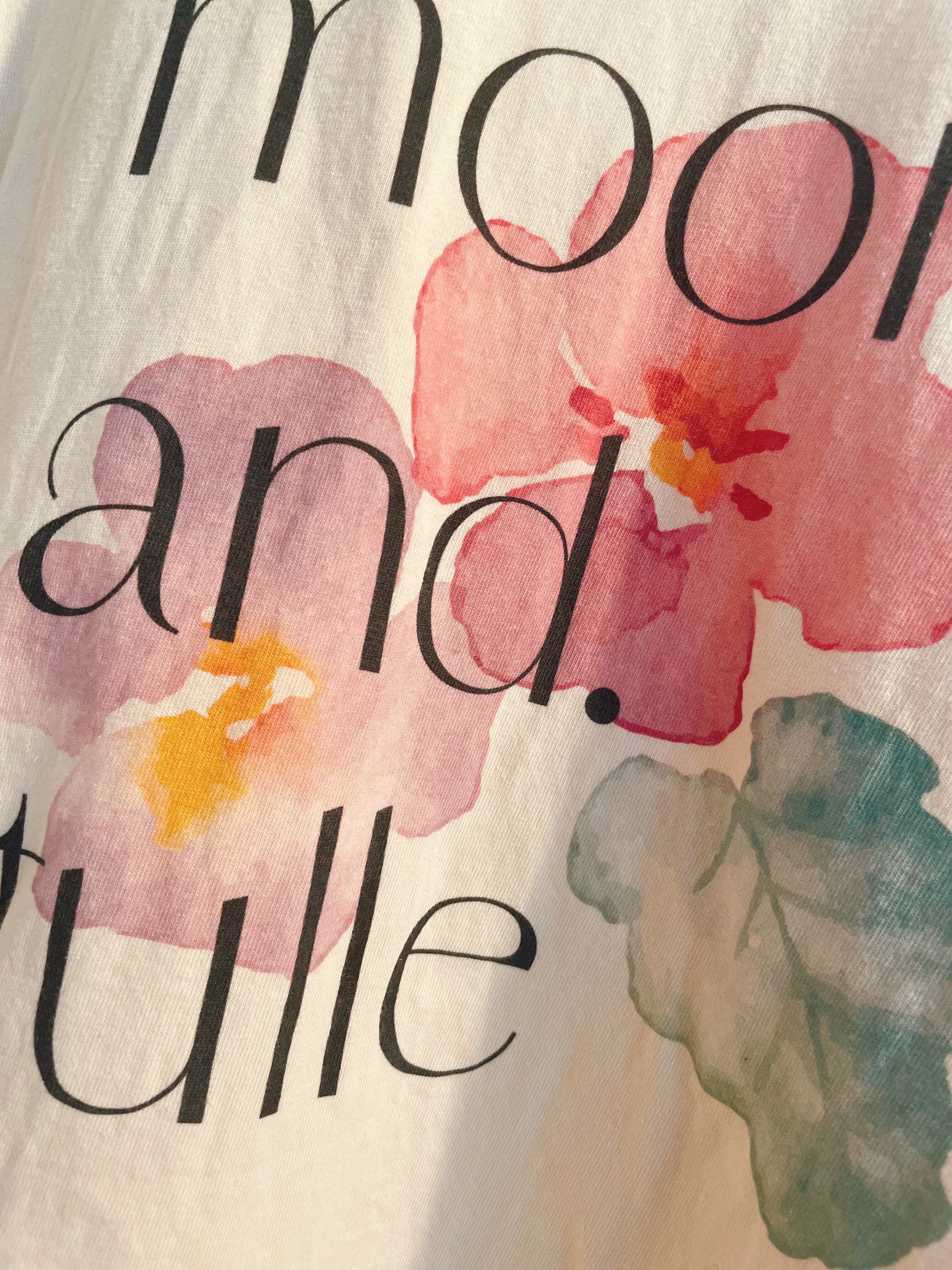 水彩の質感と花のデザインがおしゃれなTシャツです。