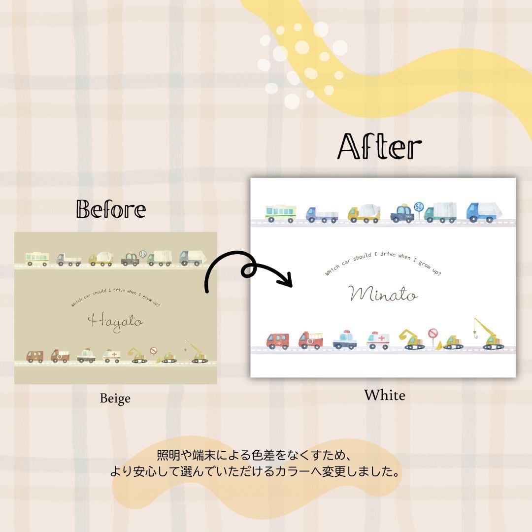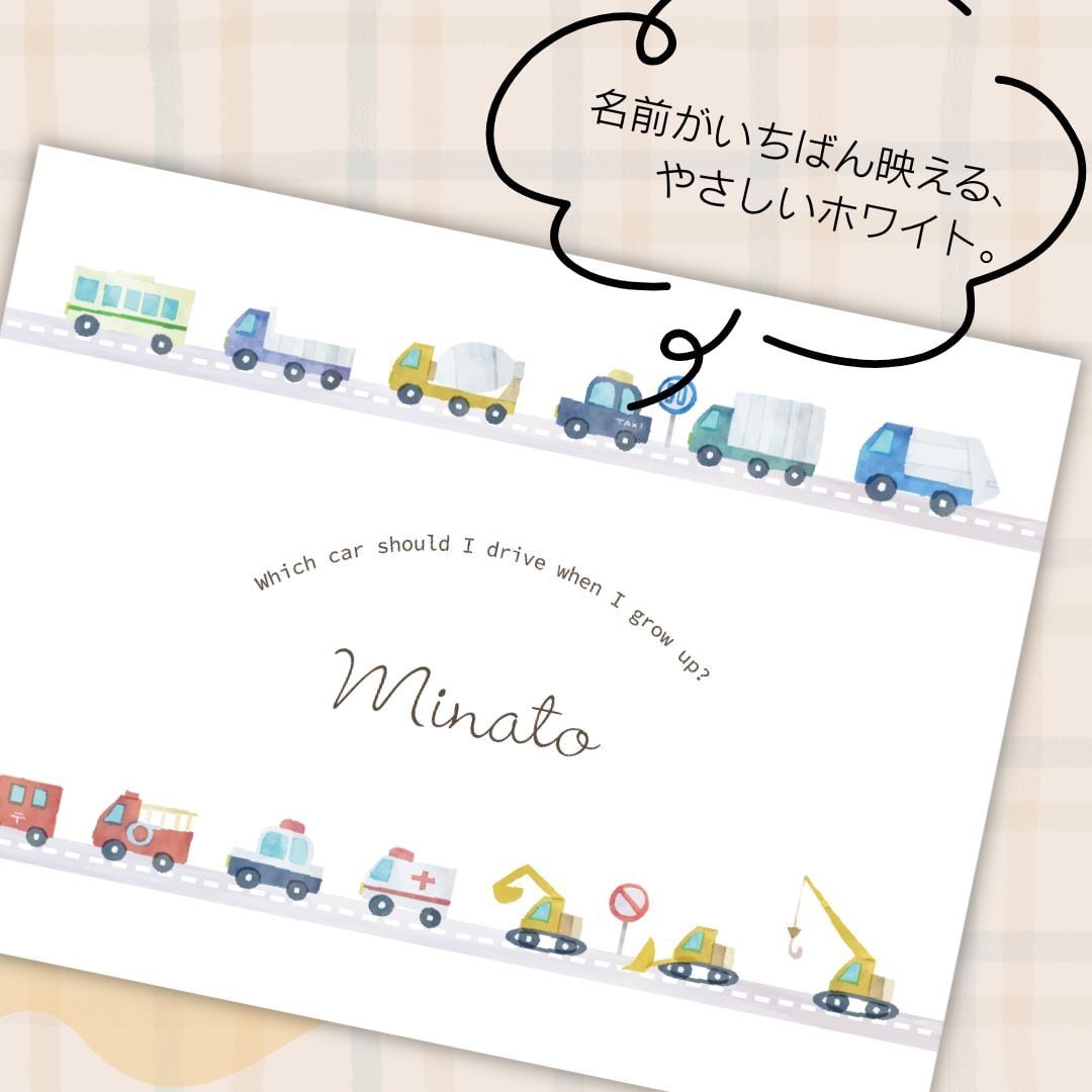 働く車が走っている柔らかくかわいらしい雰囲気にしました。